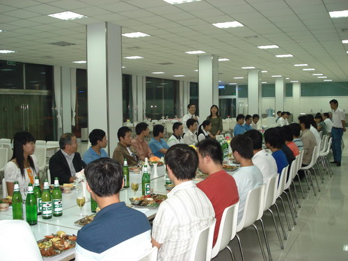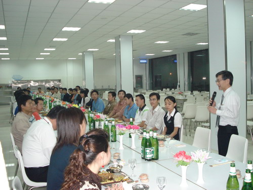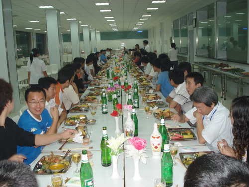 晚宴在輕快的音樂聲中舉行,總經(jīng)理孫龍平因公務(wù)無法前來,專門打電話表達(dá)了對員工的節(jié)日問候。公司董事長井上先生、常務(wù)副總鈴木先生先后致辭,表達(dá)了對員工節(jié)日的祝賀,同時談到了八月十五這一天,在日本也有全家人賞月的傳統(tǒng),故鄉(xiāng)的明月是所有游子魂?duì)繅衾@的情。自助式晚宴進(jìn)行得自由而輕松,員工之間頻頻舉杯,共敘友誼,并無多愁善感;人力資源部姜部長帶頭向員工一一祝酒,對員工的鼓勵溢于言表,整個餐廳觥籌交錯,其樂融融。