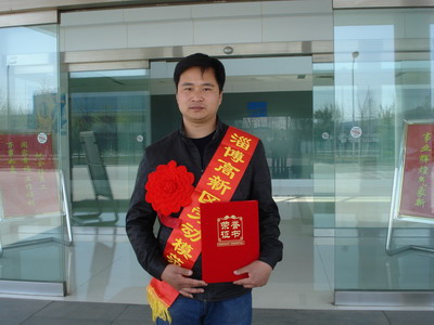 4月30日,淄博高新區(qū)勞動模范和先進工作者表彰大會在火炬大廈隆重舉行,我公司王光學同志被授予高新區(qū)“勞動模范”,并上臺領獎。