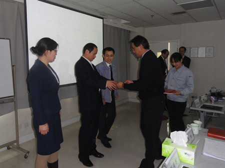 總經(jīng)理志賀進先生在會上講話,并為在2011年度營銷工作中業(yè)績突出的3名同志:高文旭、周潔、喬法彬進行了頒獎。